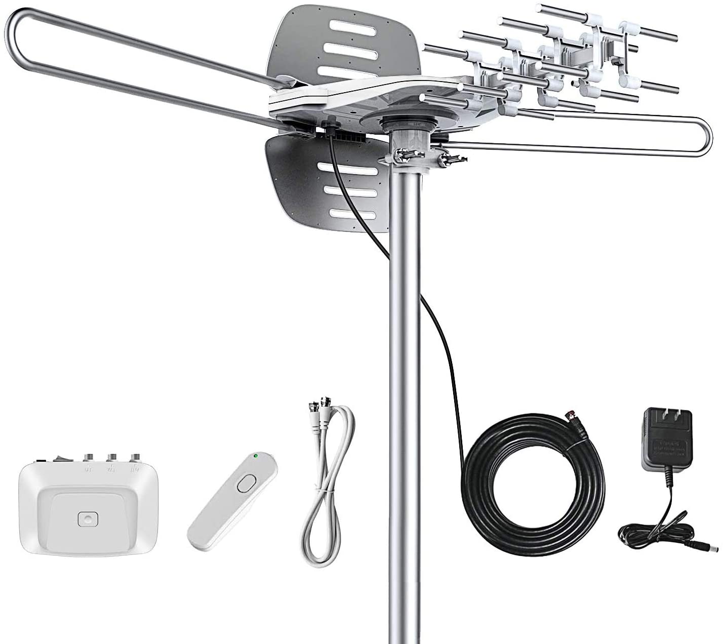 - The outdoor HD TV antenna is designed to receive digital TV UHF/VHF signals while providing high quality 1080 P HD picture. You can enjoy high definition television without the high cost of monthly cable fee. With a built-in rotor, turn a full 360-degrees using the infrared remote control.